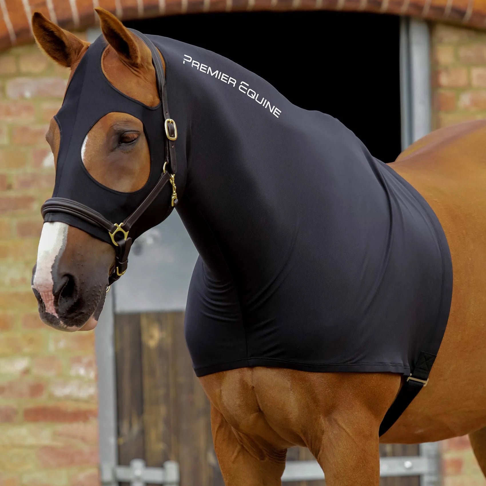Conçue pour protéger la robe et la crinière, la cagoule Stretch Lycra Premier Equine empêche efficacement la poussière, le fourrage ou la litière de se déposer, tout en aidant à maintenir les poils bien couchés – idéale pour les chevaux à crinières frisées. Elle est également parfaite pour garder les nattes en place, que ce soit pendant la nuit au box ou lors des déplacements vers un concours. Auto-fixante, elle peut être utilisée sous n’importe quelle couverture, bien qu’elle ne soit pas recommandée pour un usage extérieur.