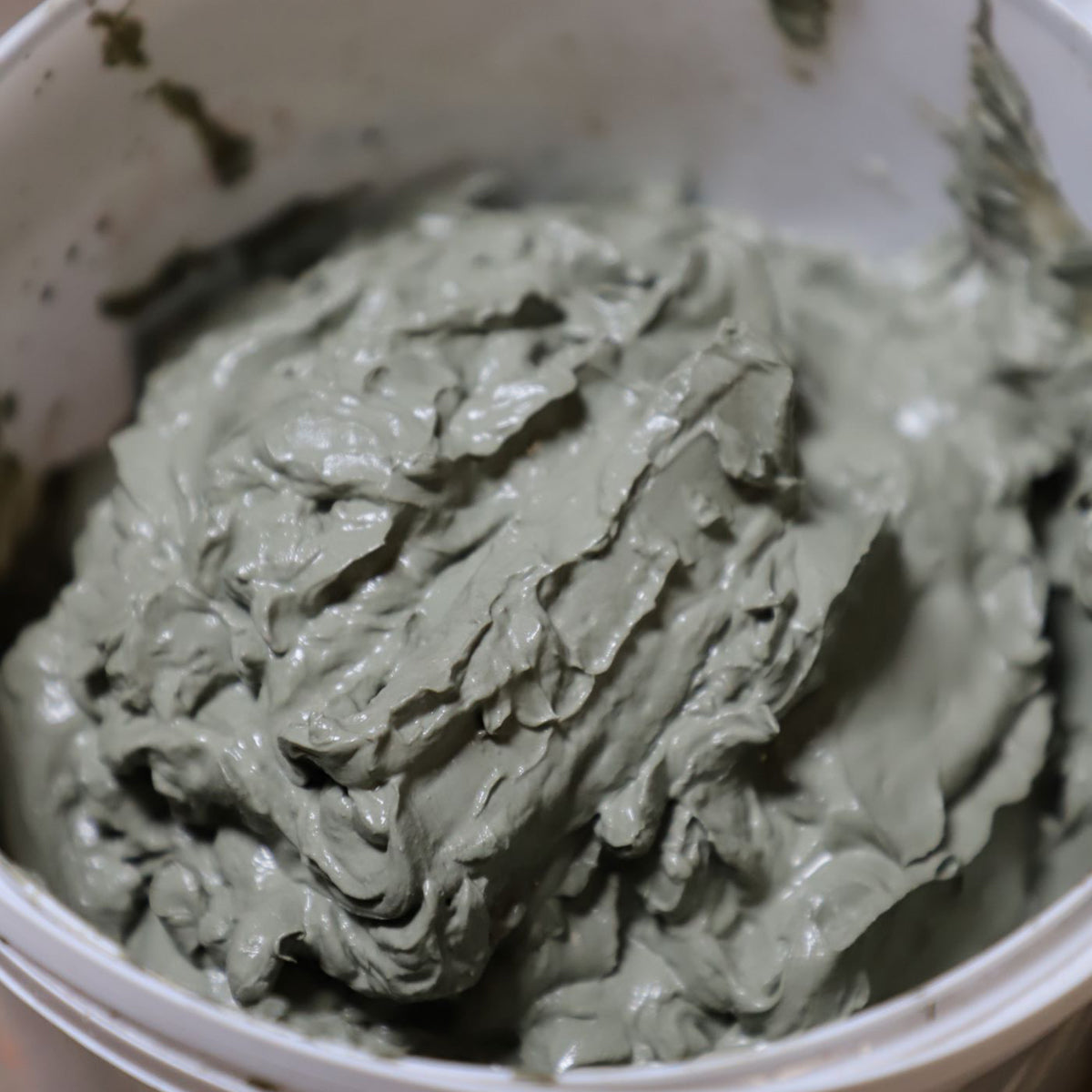 La Pâte Algues Argile présente une texture souple et fraîche, agréable et facile à appliquer. Elle adhère aux poils sans donner cet effet carton caractéristique des argiles pures, si difficiles à retirer.