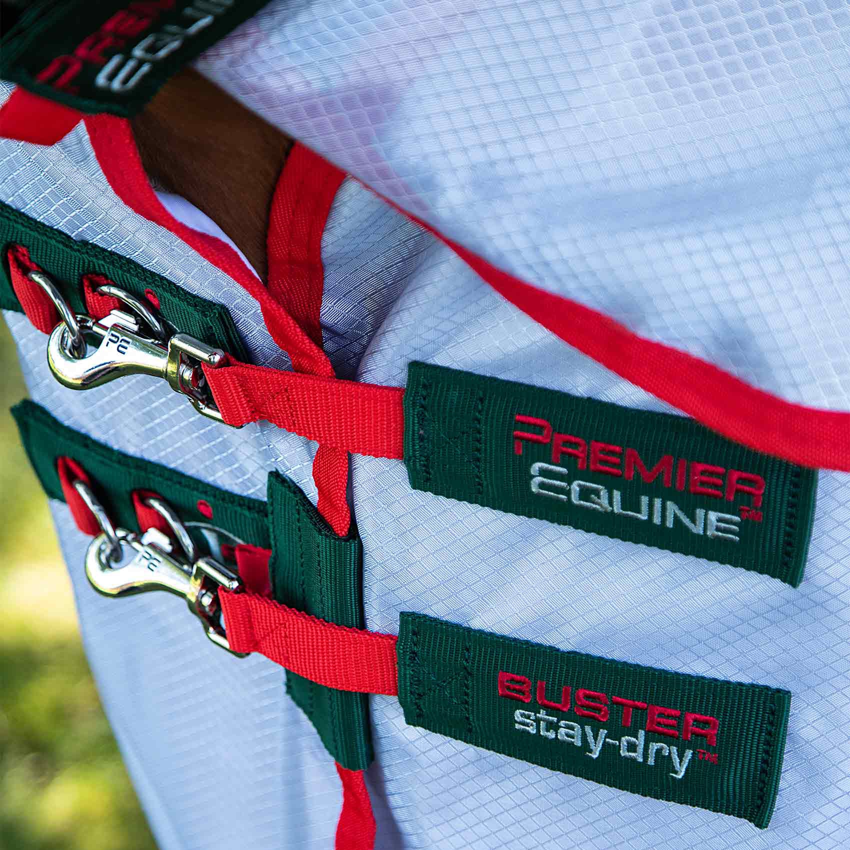 La Couverture Anti-Mouches Premier Equine Buster Stay-Dry Super Lite représente le nec plus ultra en matière de protection équine.
