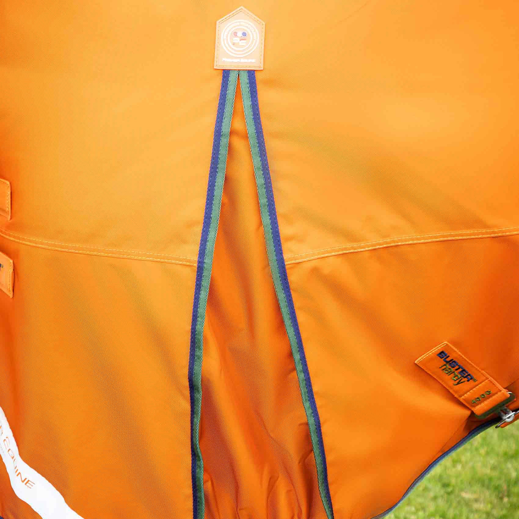 La couverture est dotée d'un soufflet d'épaule élastiqué très haut (enregistré sous le modèle britannique 4 010 772), de attaches de poitrine à dégagement rapide et de courroies de jambe détachables, permettant une liberté de mouvement maximale pour votre cheval.