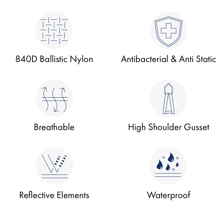 Le couvre cou plus long sur le garrot, le soufflet d'épaule élastique (enregistré sous le modèle britannique 4 010 772), et les attaches pour notre doublure (vendue séparément) contribuent à une protection totale contre les intempéries.