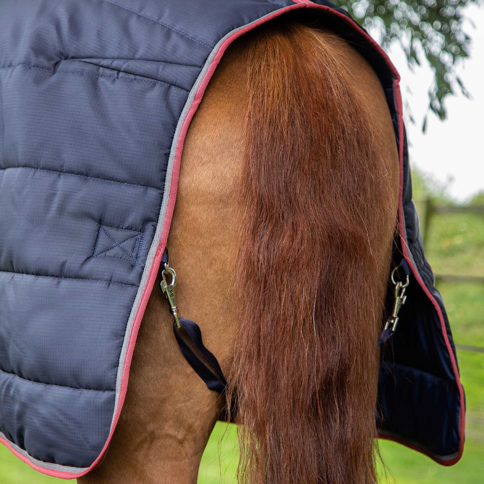 Dotée d'attaches rapides au poitrail et de sursangles croisées, cette couverture d'écurie est indispensable pour les mois les plus doux.
