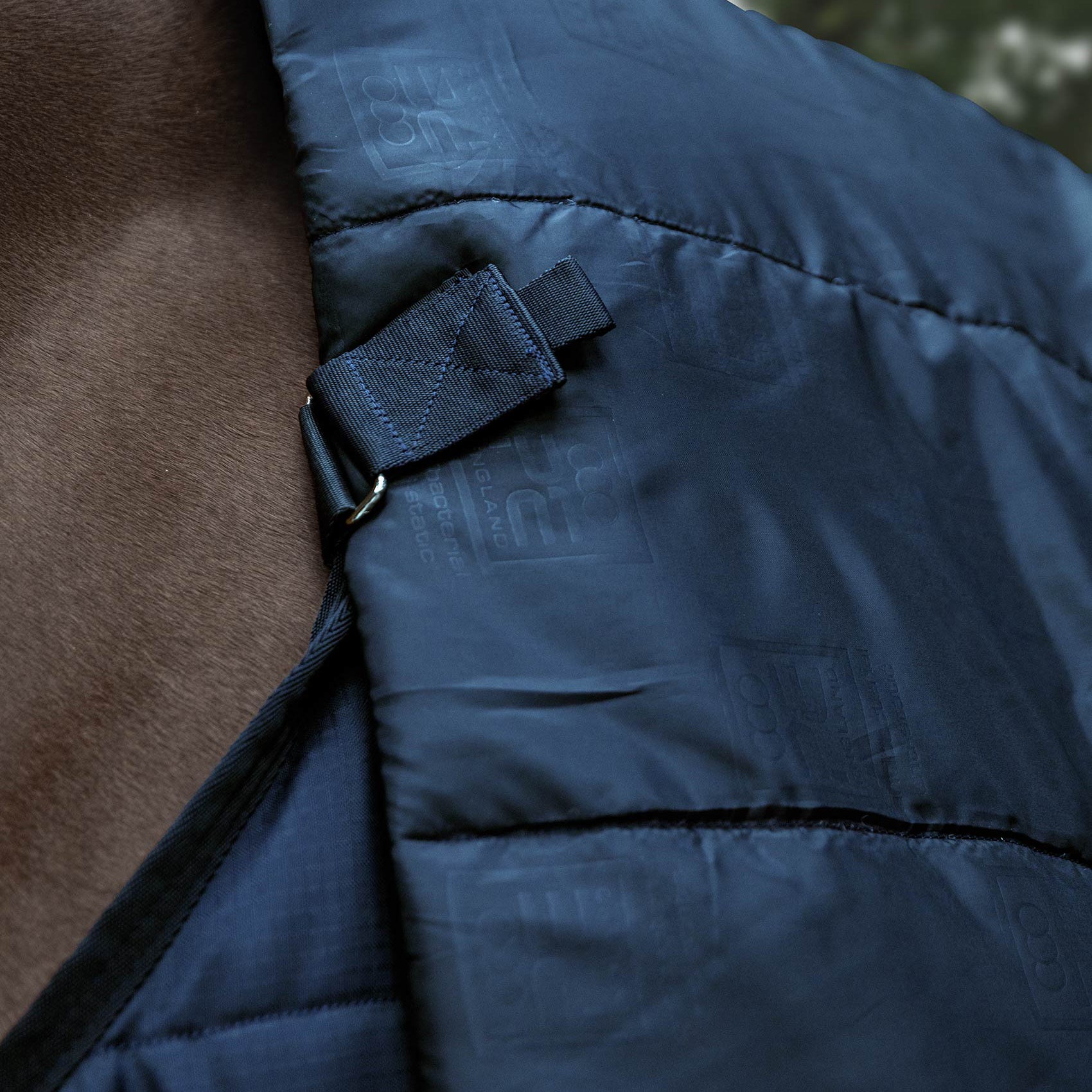 Le tissu matelassé confère à cette couverture une esthétique douillette, avec un rembourrage thermolié de 200 g contenu dans la construction de la couverture, qui offre une rétention supplémentaire de la température lorsque votre cheval a besoin d'une protection supplémentaire contre le froid.