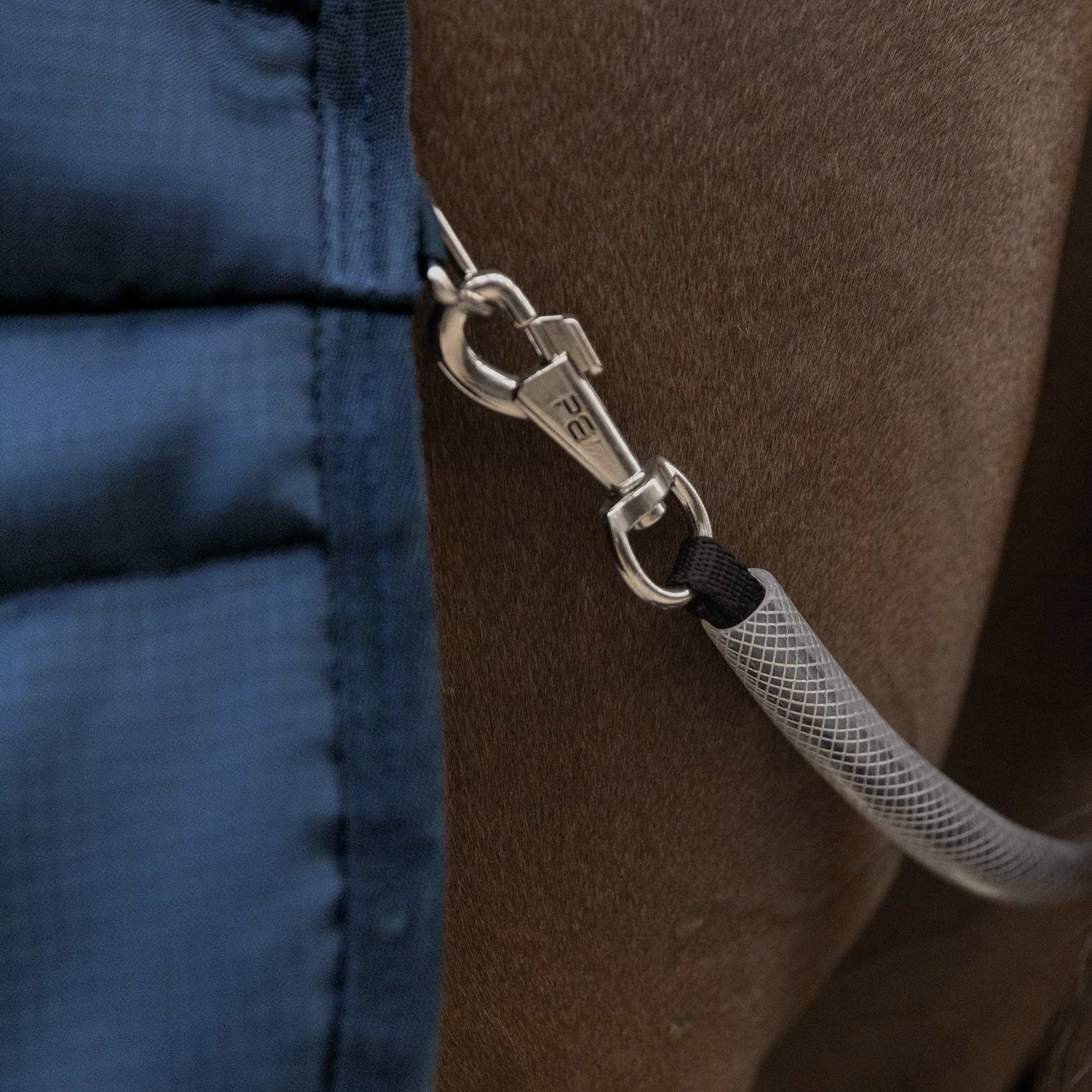 En guise de touche finale, cette couverture d'écurie matelassée comprend une courroie de queue à clipser, enduite de PVC, pour préserver la durabilité de la courroie de queue au fil du temps.