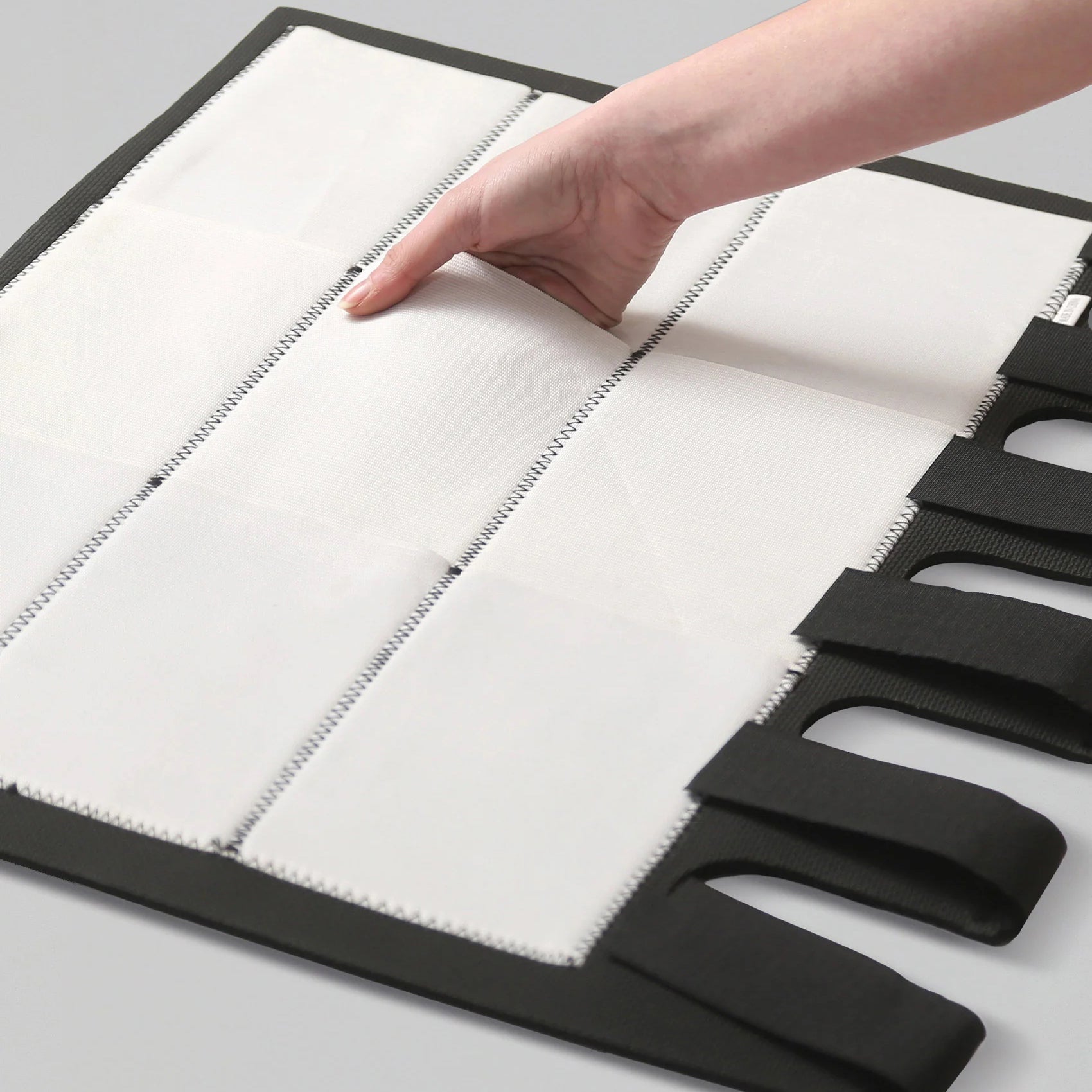 Neuf poches cousues à l'intérieur des guêtres peuvent contenir de la glace pilée. Le néoprène est isolé pour maintenir le froid plus longtemps et ne pas absorber l'humidité. Les poches élastiques évitent le traumatisme de la glace pilée directement contre la peau du cheval et permettent une pénétration lente, initiant ainsi le traitement.