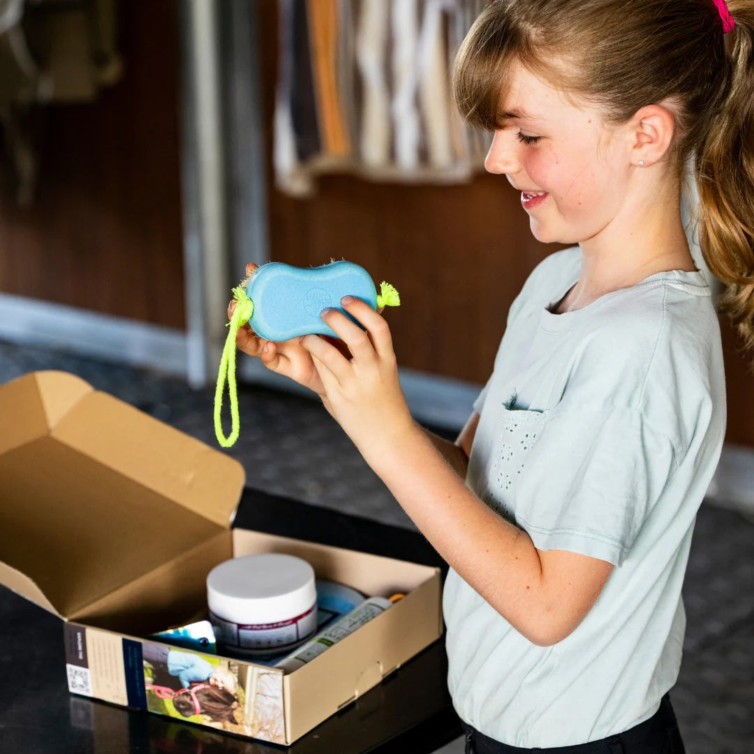 Un kit de lavage amusant, coloré et éco-responsable, conçu spécialement pour les jeunes cavaliers !