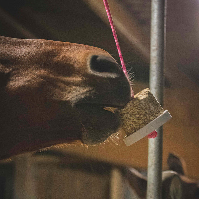 Petit Tip's : suspendez le jouet en l'éloignant autant que possible des murs ou barreaux, pour que votre cheval ne puisse pas le coincer facilement. Vous pouvez aussi lui mettre que pendant le pansage, un soin ou un transport.