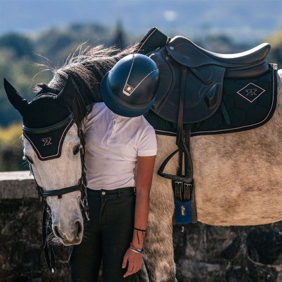 Découvrez le tapis de selle Oxxer – collection Accents, une création qui associe sobriété et raffinement au service de la performance équestre.