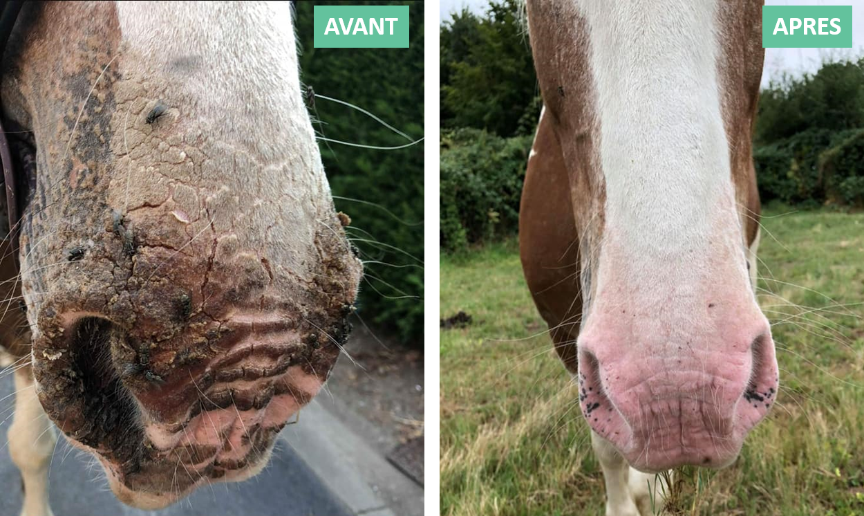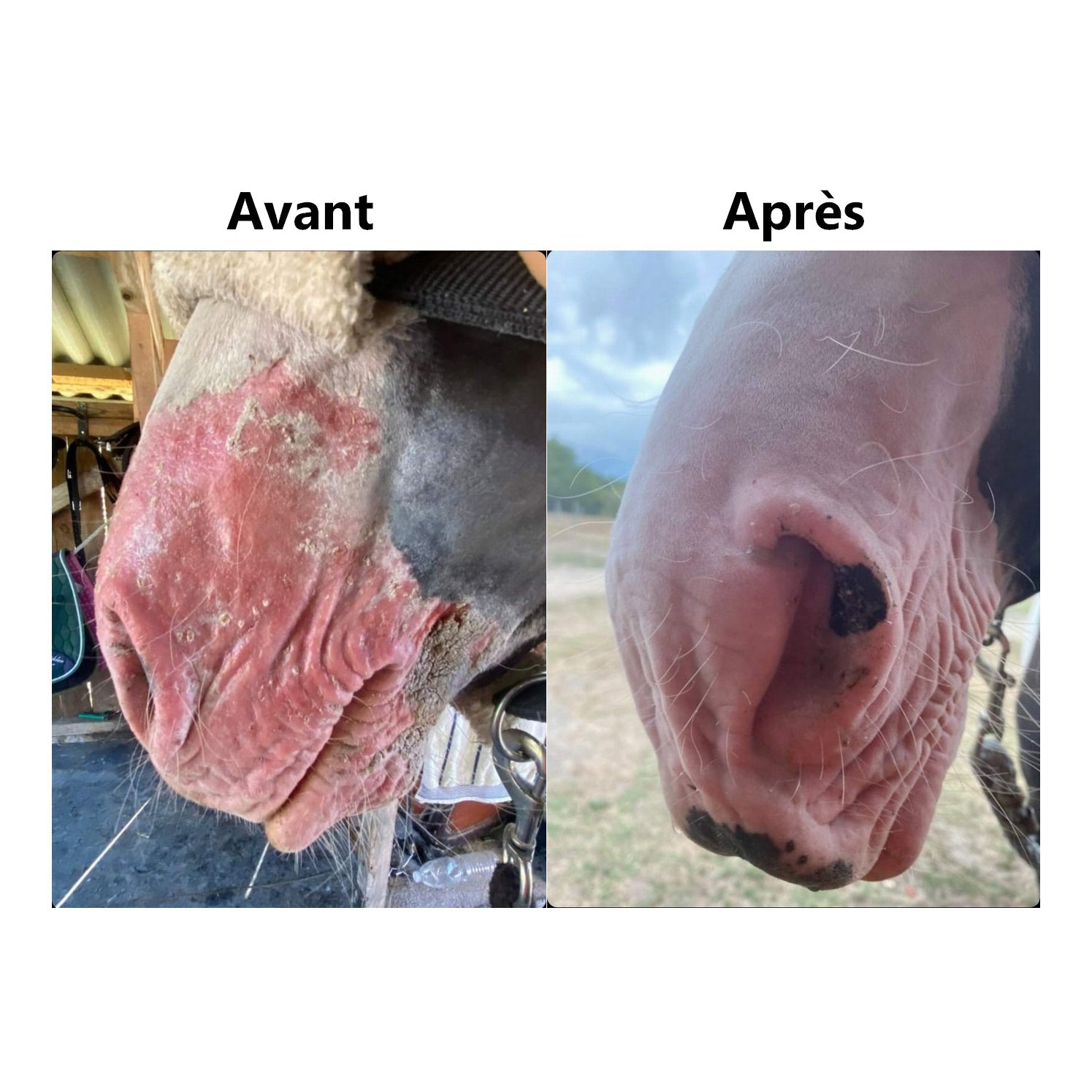 - Il ne coule pas et peut s’appliquer autour des yeux et des naseaux et sur des zones de peau fragilisée.