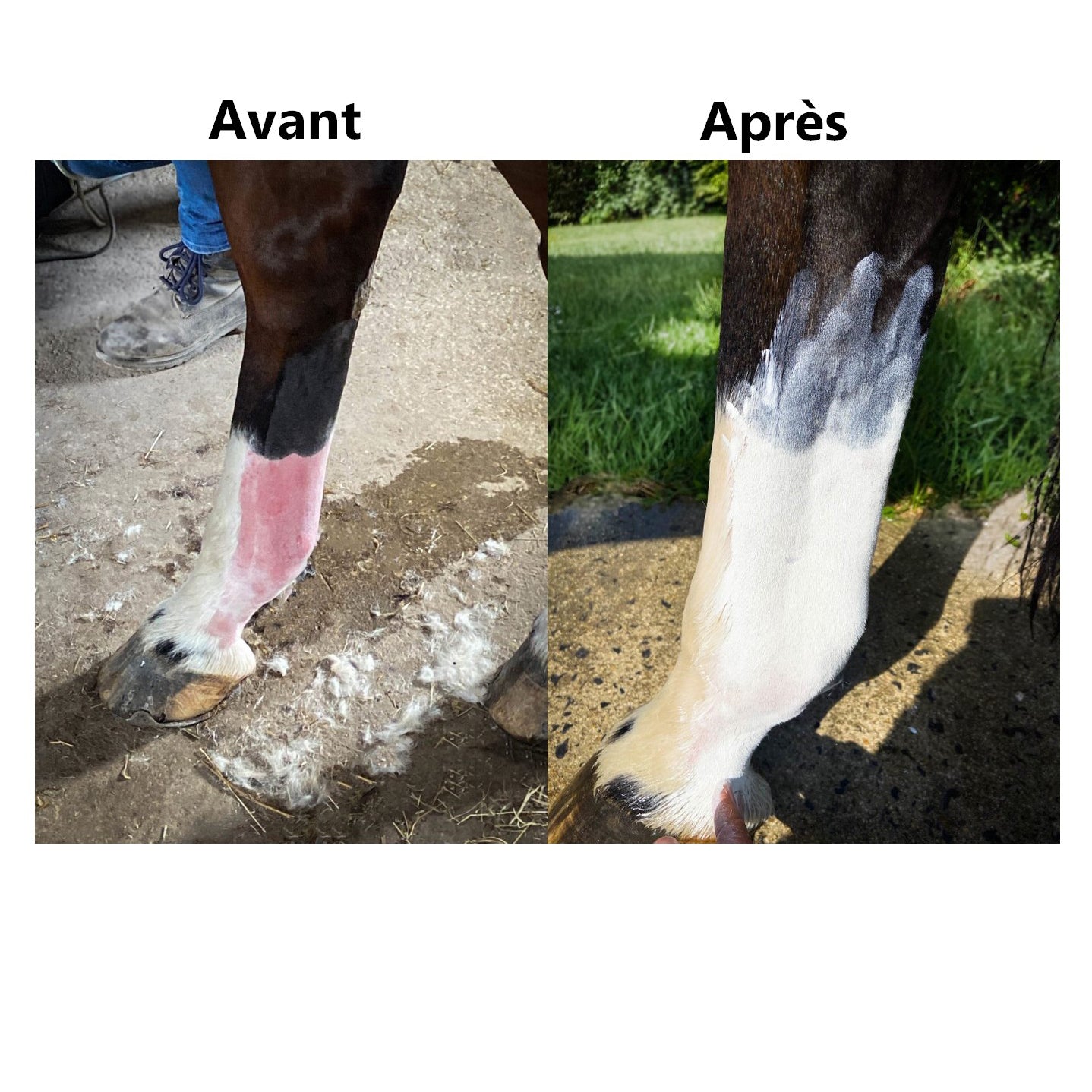 - Il pénètre sous le poil et permet de protéger toutes les zones sensibles du cheval.