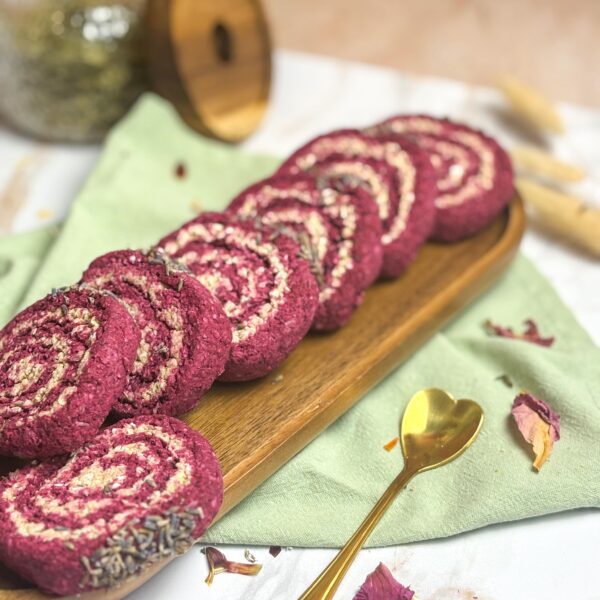 🌸 Fleurs de Lavande Bio : Délicatement parsemées sur le dessus, elles apportent un parfum floral subtil et une touche d’élégance à cette friandise.