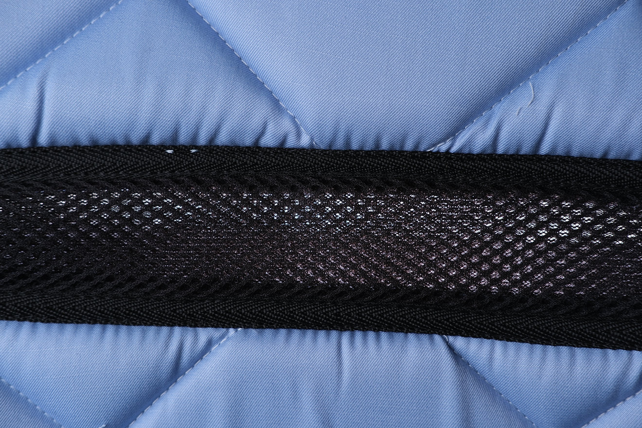 Notre nouveau tapis de la collection "Horse Care" est principalement développé pour le confort du cheval et pour son côté esthétique. Il est composé de fibres innovantes tissées en 3D, elles permettent de laisser passer un flux d'air important afin de réduire considérablement la sueur de votre cheval, mais aussi une meilleure répartition des points de pression. Le tissu technique utilisé est épais, et se suffit à lui-même.